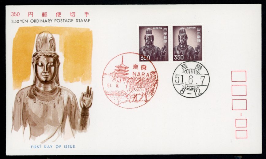 - 1144 【FDC】普通切手 第4次ローマ字入り 350円「観音菩薩立像」[奈良/51.6.7/切手普及協会]
