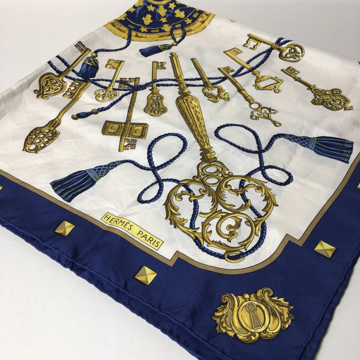 - 74B173|美品|エルメス カレ 90 スカーフ シルク ネイビー