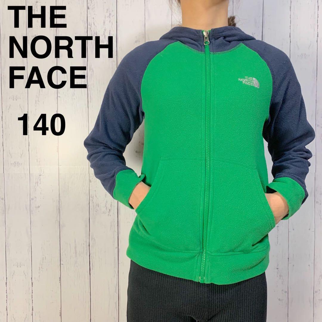 > ノースフェイス フーディ フリースパーカー バイカラー キッズ 140 ストレッチ バイカラー ジャケット 刺ロゴ