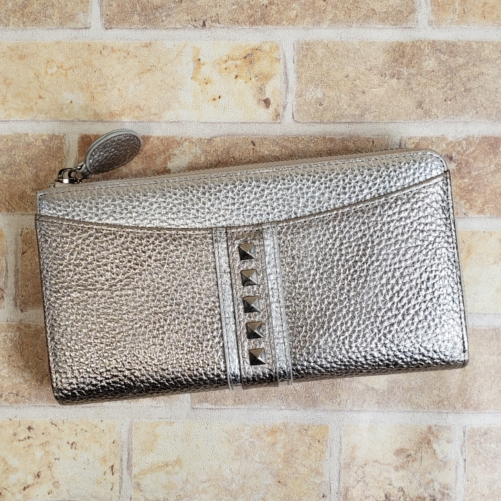 - キョウコヒガ スタッズ レザー L字ファスナー 長財布 シルバー 財布 ボックス型小銭室 財布