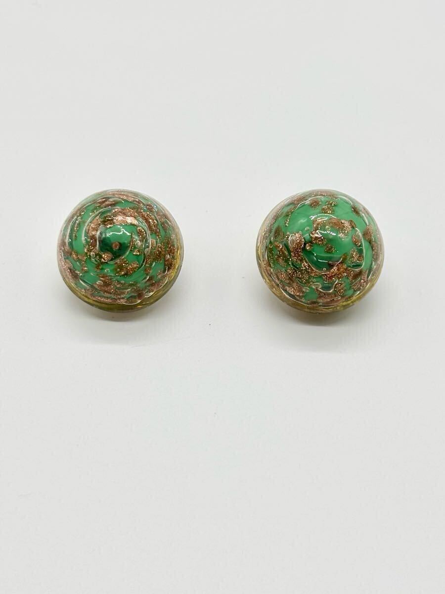 - 【美品】ヴィンテージ ヴェネチアンガラス グリーン コッパー イヤリング コスチュームジュエリー イタリア製 ベネチアン グリッター