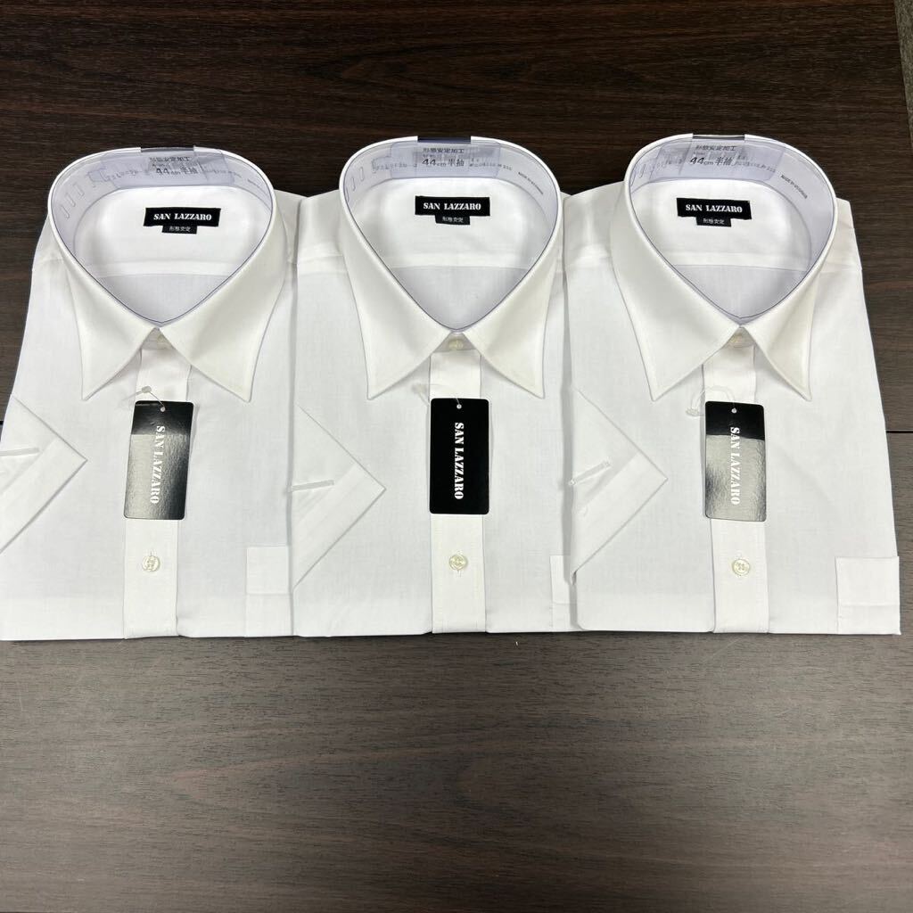 - 半袖形態安定ドレスシャツ 3枚セット 白無地 44cm