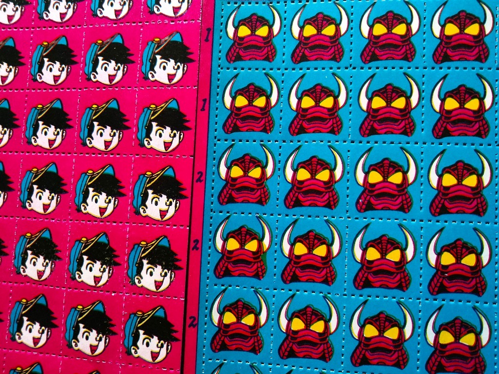 - 古い おかし屋さん くじ紙 当時物 未使用 2シート パチ 特撮テレビヒーロー 人気者 !! ☆ 魔人バンダー ハリスの旋風 駄菓子屋 昭和レトロ