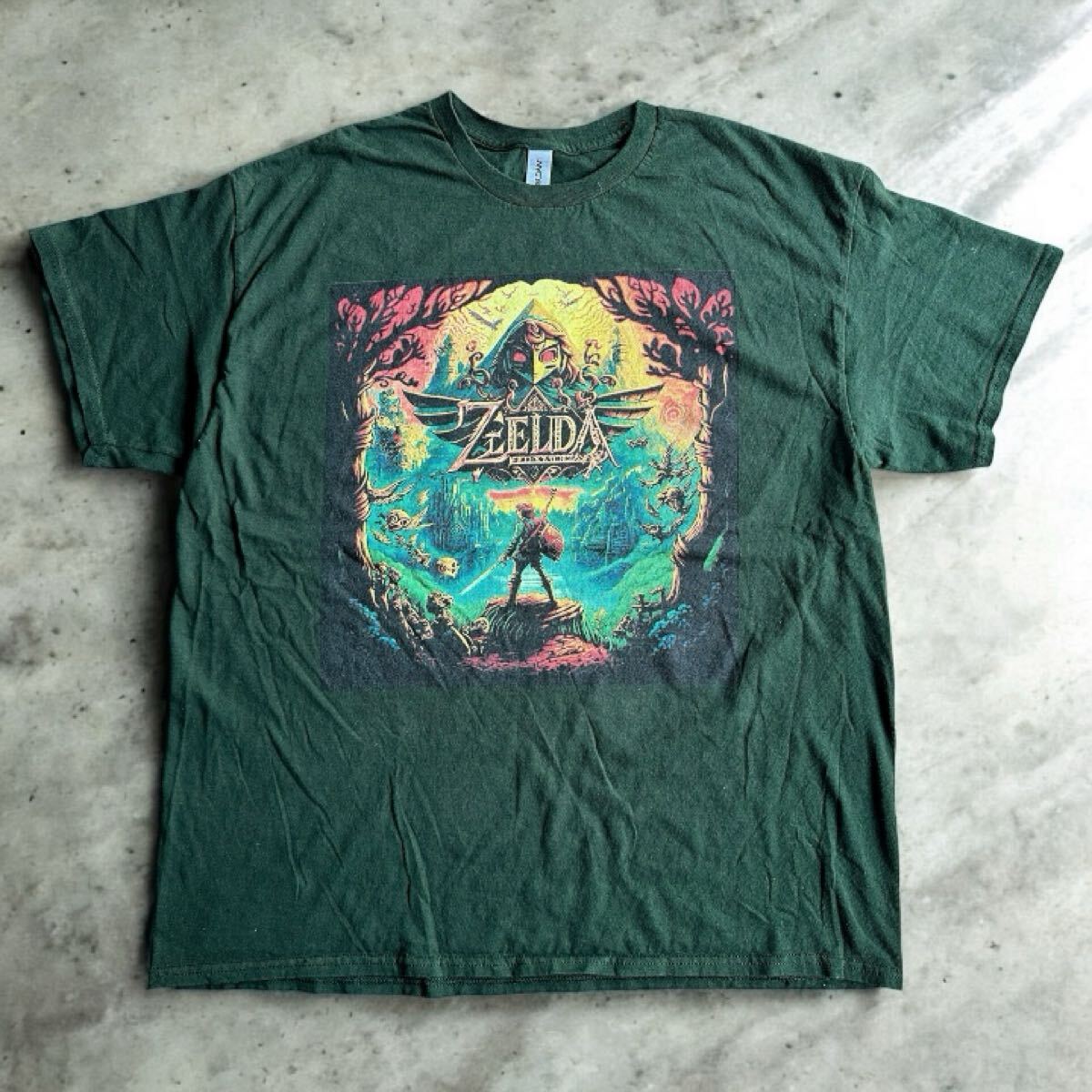 - 【ゼルダ】2010s GILDAN製 XL Tシャツ グリーン ヴィンテージ古着 ハイチ製 ゼルダの伝説 ギルダンボディ アメカジ