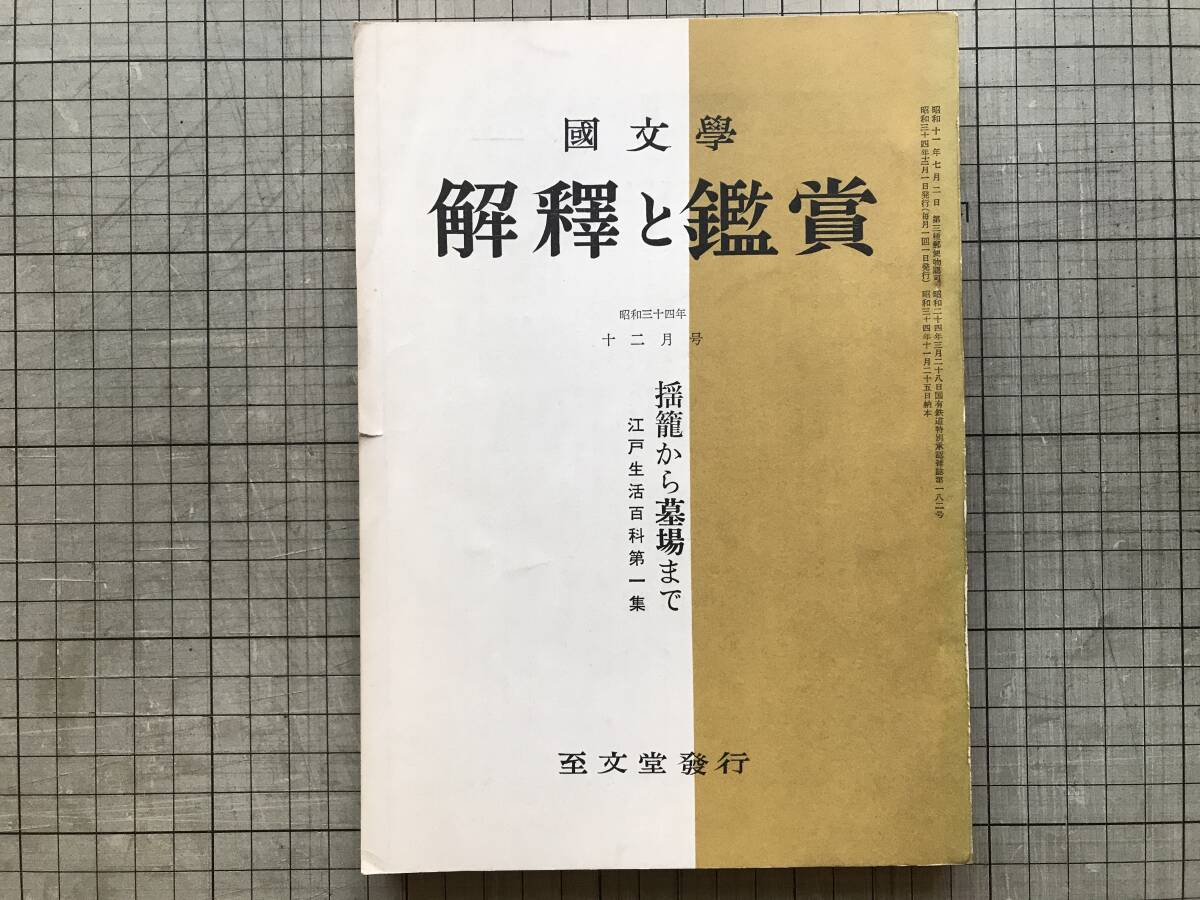 > 『国文学 解釈と鑑賞 第285号 第24巻14号 揺籠から墓場まで 江戸生活百科第一集』岡田甫・田中直樹・山路閑古 他 至文堂 1959年刊 11452