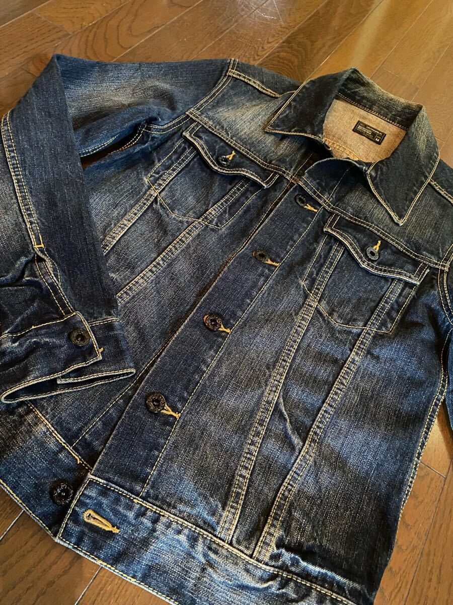 > 美品デニムジーンズジャケットダンガリーシャツカバーオールvintagewashダメージエイジングヒゲインディゴワークバイカーライダーグランジ