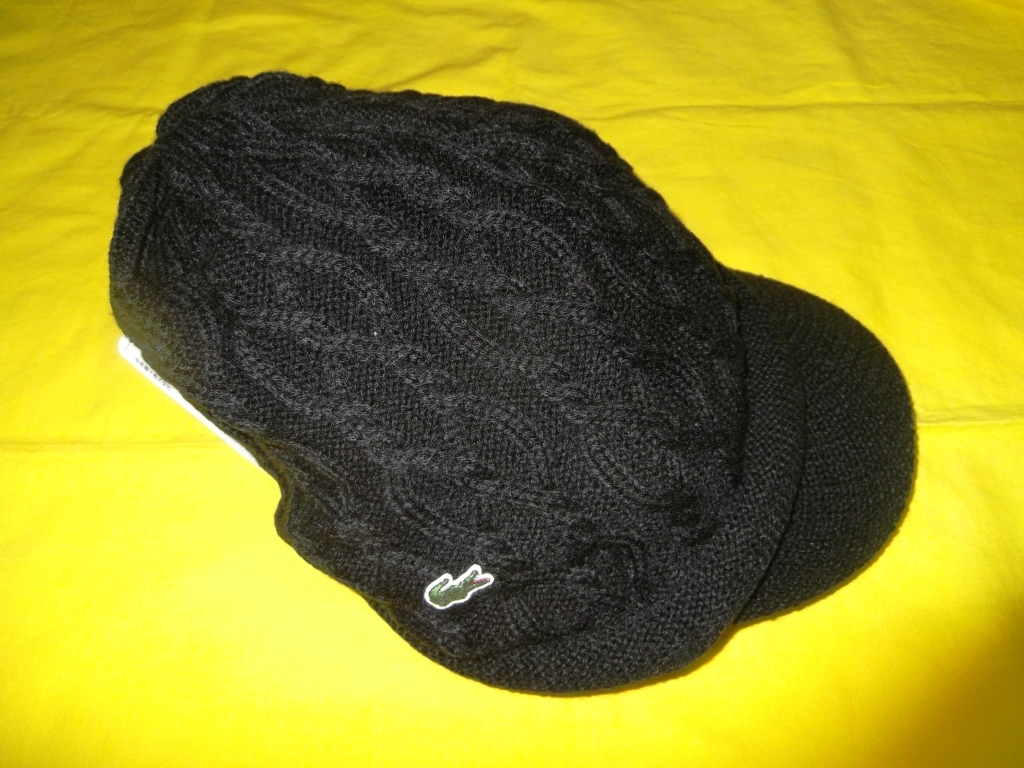 > ◎ラコステ LACOSTE ケーブルニット キャスケット ニット帽 フリー 57~59㎝ ブラック 日本製 ニット 帽子 W6815