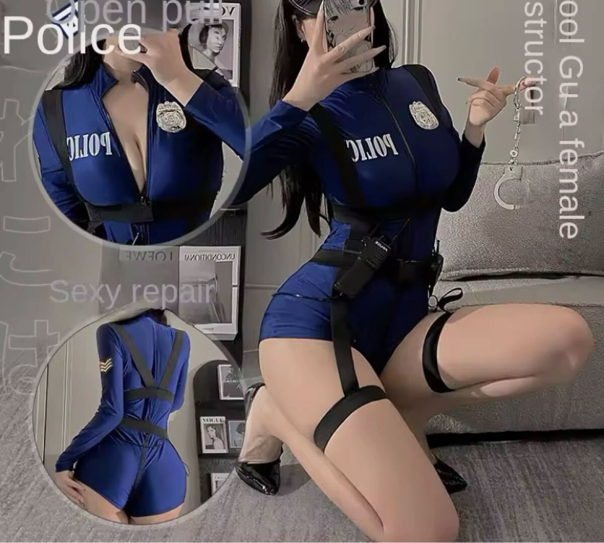 - 配信撮影セクシー制服ポリスコスプレ衣装ボディスーツハーネス付きレオタード セクシー婦人警察官キャバドレス