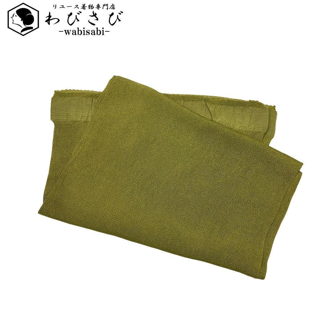 苔色のお色味に無地に素敵な縮緬のお品でございます。