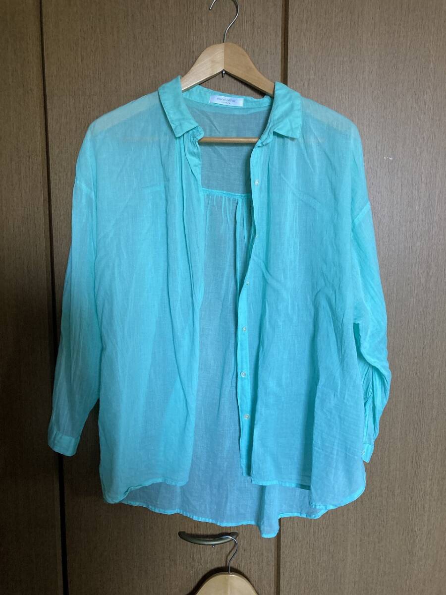 > chocol raffine robe インド綿 インド製品 ミント色の薄手シャツ日よけにも★サイズF★綿100%★ゆったりめ