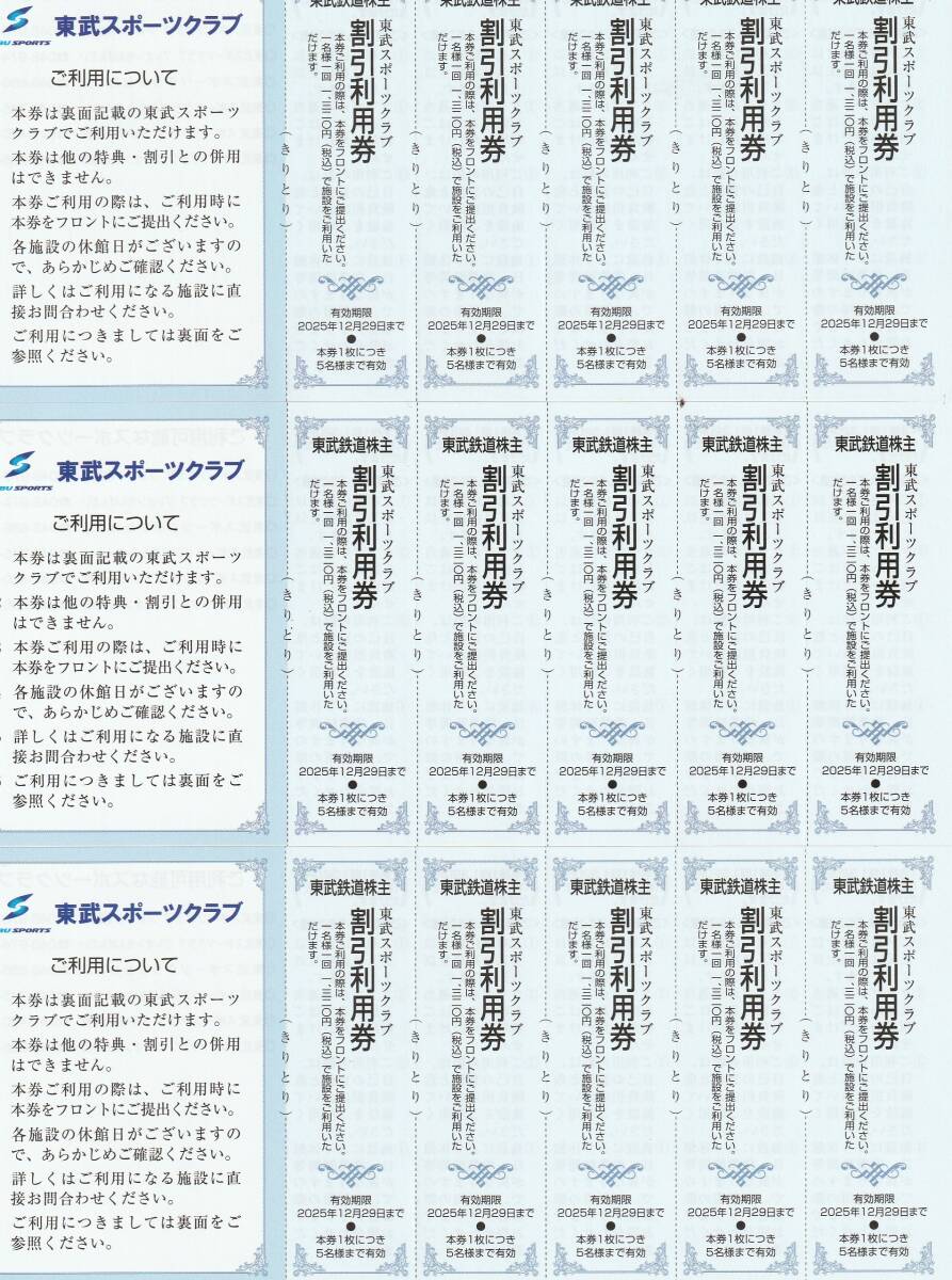 - 東武鉄道株主★東武スポーツクラブ★割引利用券(施設利用割引券)★3シート(15枚セット)★即決