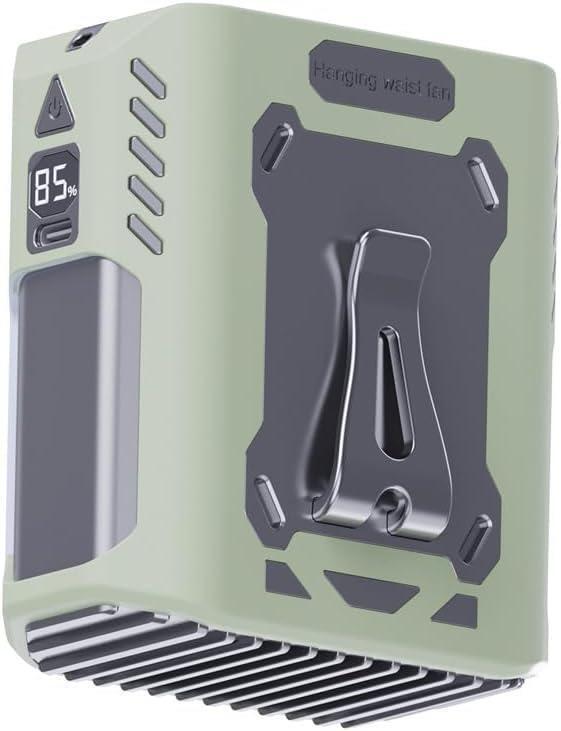 - 【強力】ベルトファン 腰掛け扇風機 5段階風量調節 静音設計 8000mAh大容量 熱中症対策 アウトドア/屋外作業/オフィス グリーン 800