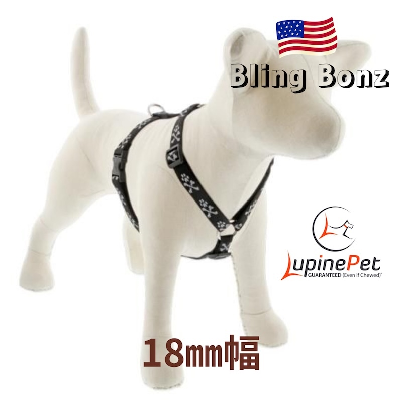 > ローマンハーネス・Sサイズ 18mm幅ブリングボンズ Bling Bonz柄 30-50cm LUPINEルパイン アメリカ製 軽量 丈夫 中型犬