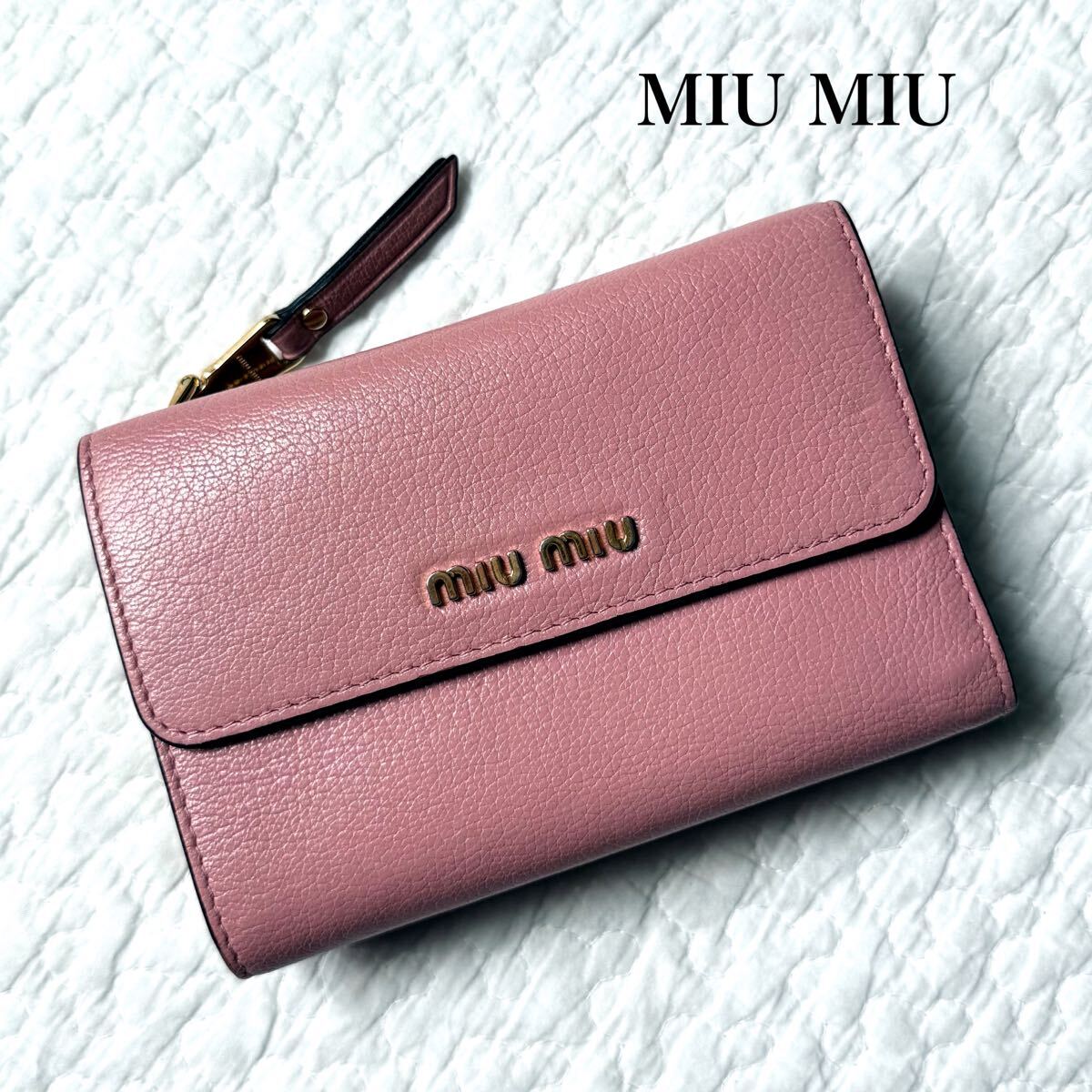 - MIU MIU ミュウミュウ マドラスレザー L字ファスナー ピンク ゴールド金具 ロゴ ミディアムウォレット ブランド 高級 5ML014 MADRAS ROSA