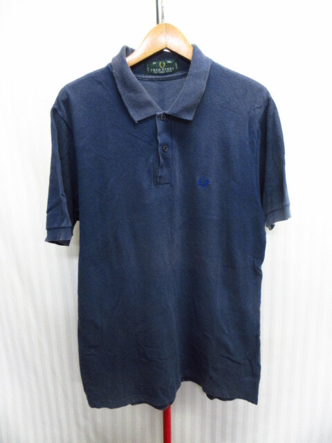 - 英国製 フレッドペリー 90sヴィンテージ ポロシャツ メンズ44 XL LL 紺 ロゴ刺繍シャツ サンフェード 襟付き半袖 イングランド製07083