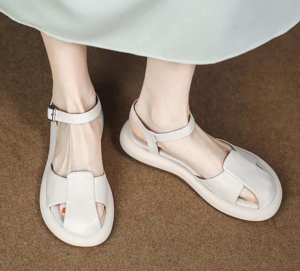 - 人気推薦/レディーズ サンダル ストラップサンダル ぺたんこ 柔らかい オフィスサンダル 歩きやすい 軽い 痛くない オープントゥ/ ホワイト