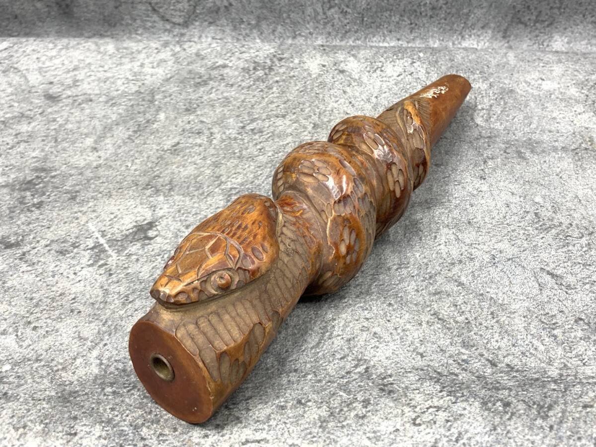 - 【 喫煙具 木製 パイプ 蛇 装飾 】インテリア コレクション 趣味 煙草 雰囲気 小道具 煙管