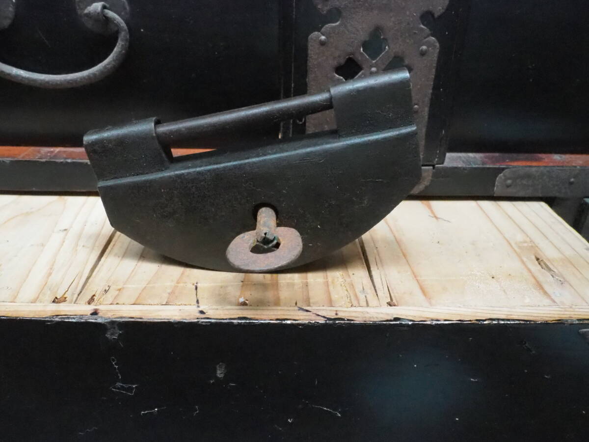 - 【明治期鍵付き錠前K】鉄製アイアン古道具アンティーク扉ドア戸金庫リフォーム蔵戸キー自在鉤インテリア箪笥インダストリアル