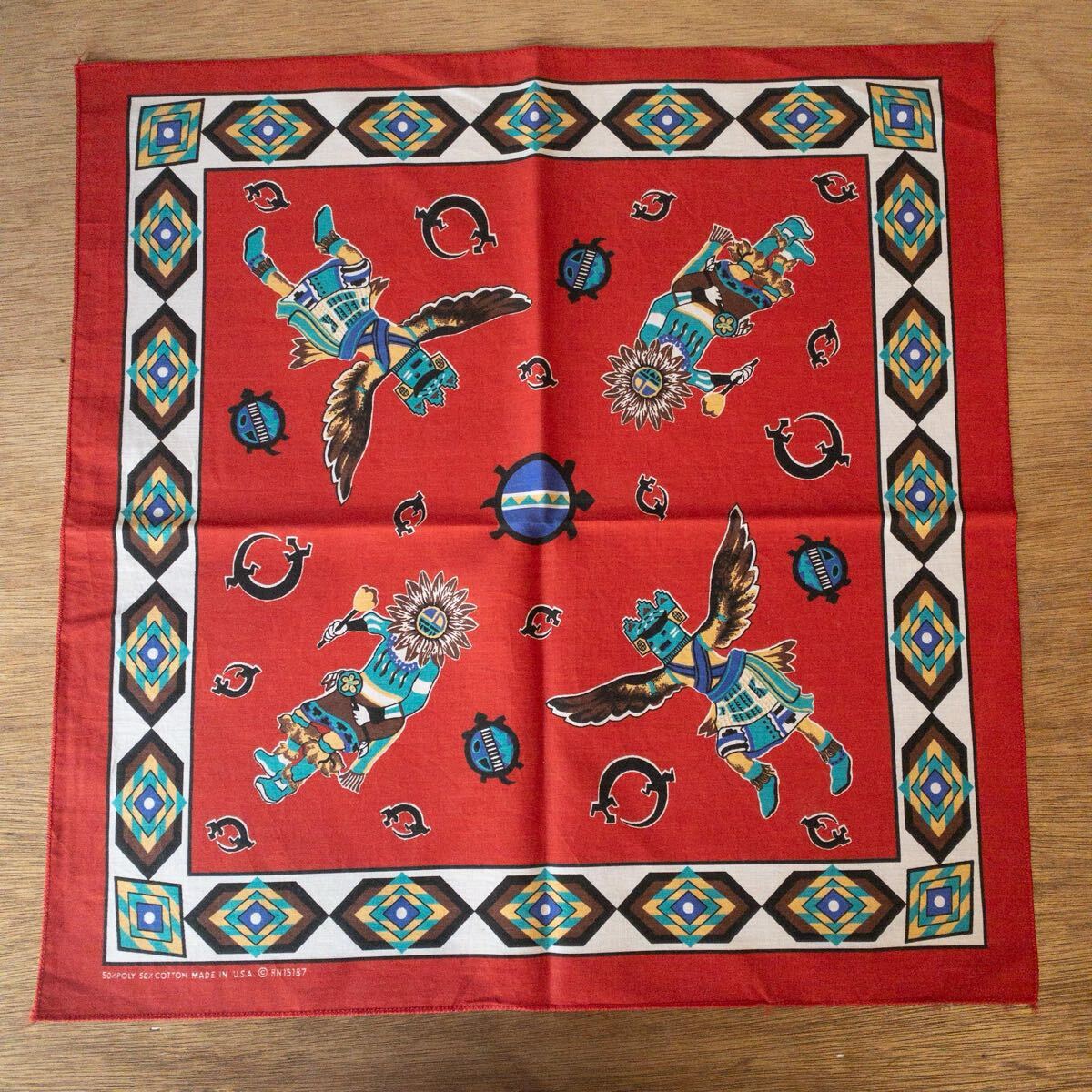 > 送料無料 Vintage バンダナ ハンカチ ネイティブ柄 アメリカ仕入れ レッド アメカジ USA製 コーデ 小物 雑貨 ヴィンテージ A1727