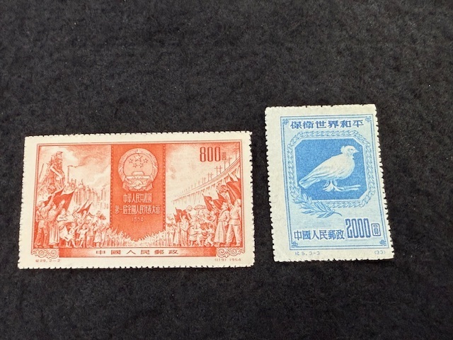 - 71、中国切手(紀29、2-2 中華人民共和国 第1回全国人民代表大会)(紀5、3-3 保衛世界和平 2000圓)未使用品