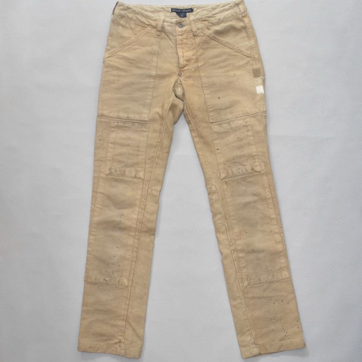 - 00s ラルフローレン ヴィンテージ加工 ダブルニー ワークパンツ リネンW70 ダック地POLO RALPH LAUREN XS 美品 ペイント加工 パッチワーク
