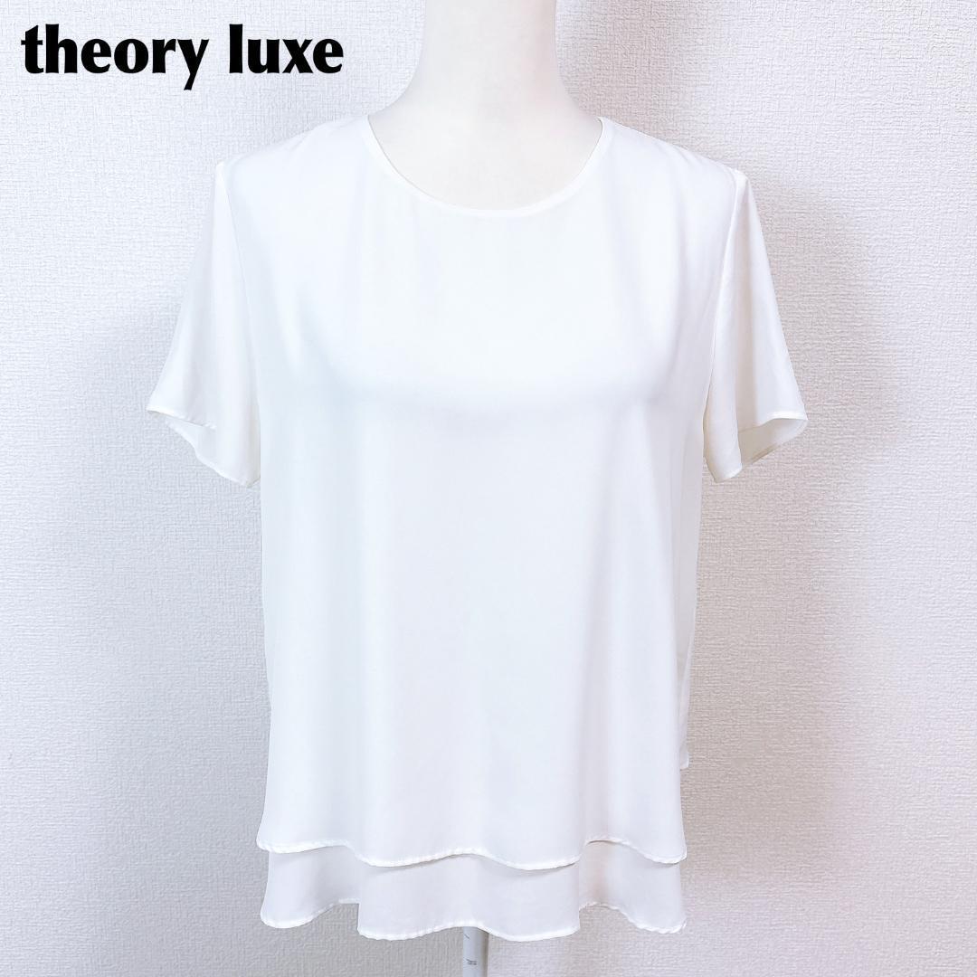 - 【美品】セオリーリュクス 半袖レイヤードブラウス 裾フリル 42 ホワイト