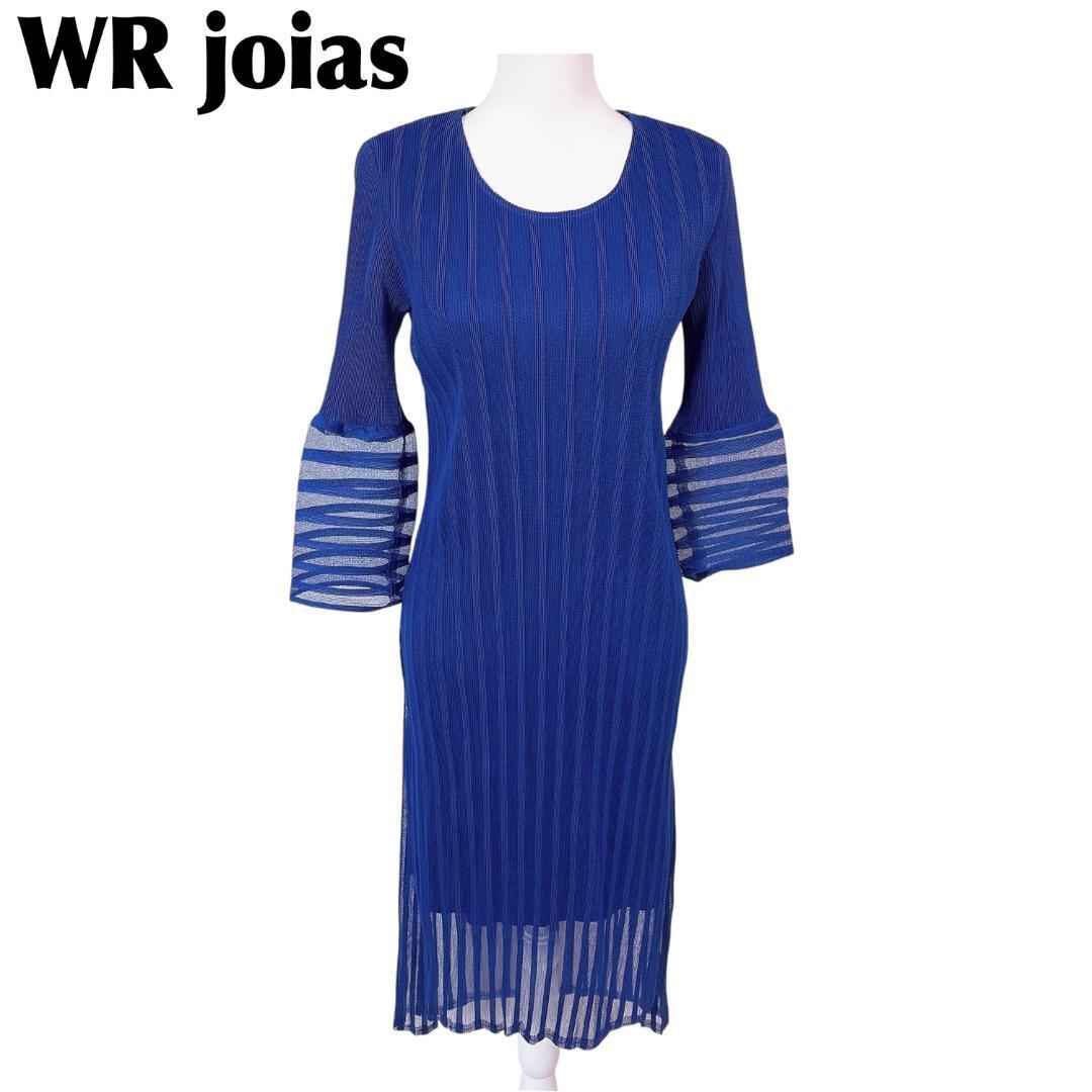 - 【美品】ダブルアール ジョイアス 長袖ワンピース プリーツOP F ブルー