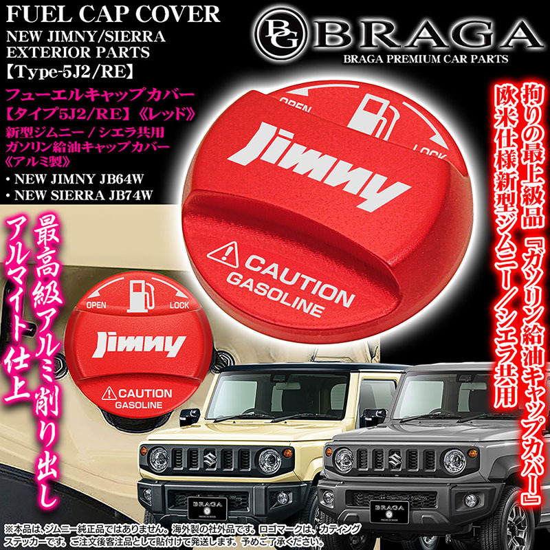 - JB64Wジムニー/タイプ5J2/RE/給油 フューエル キャップ カバー/アルミ製アルマイト/レッド/新型ジムニー ロゴ ステッカー付/客注品/ブラガ