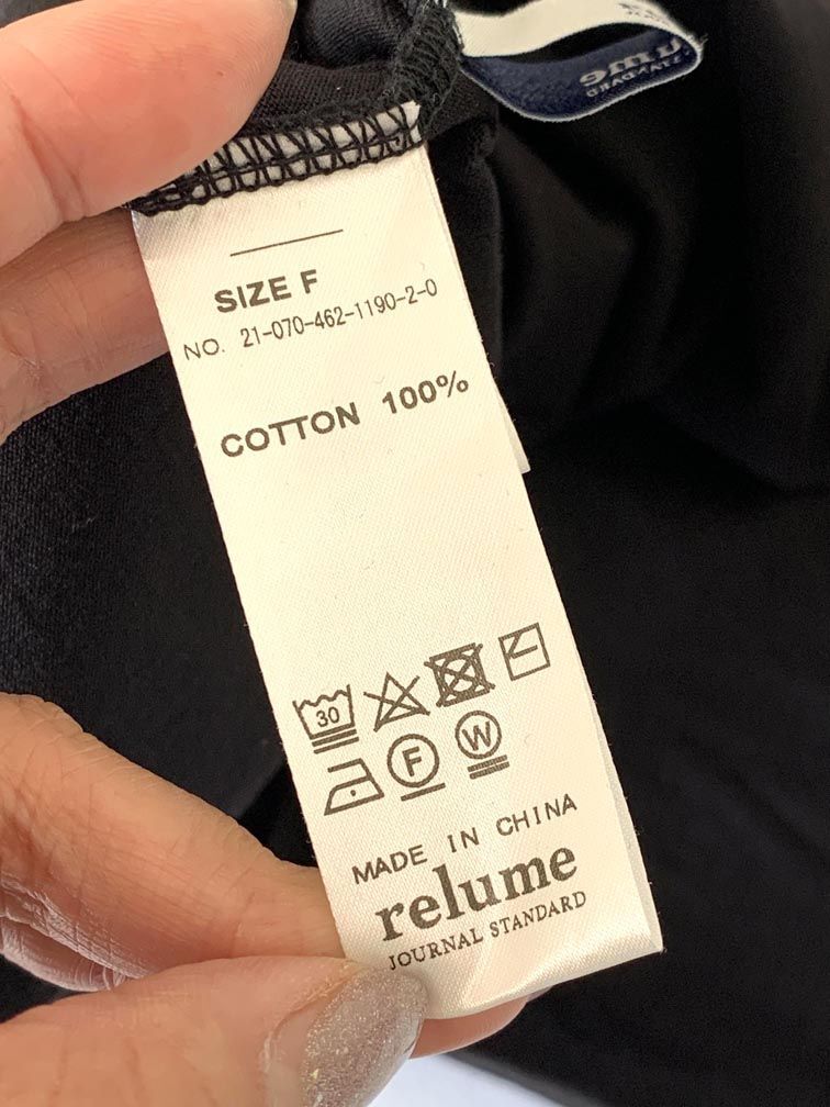 - ゆうパケットOK 美品■JOURNAL STANDARD relume 21-070-462-1190-2-0 定価6600円 シルケット天竺ビックカラー Tシャツ sizeF/黒■◆
