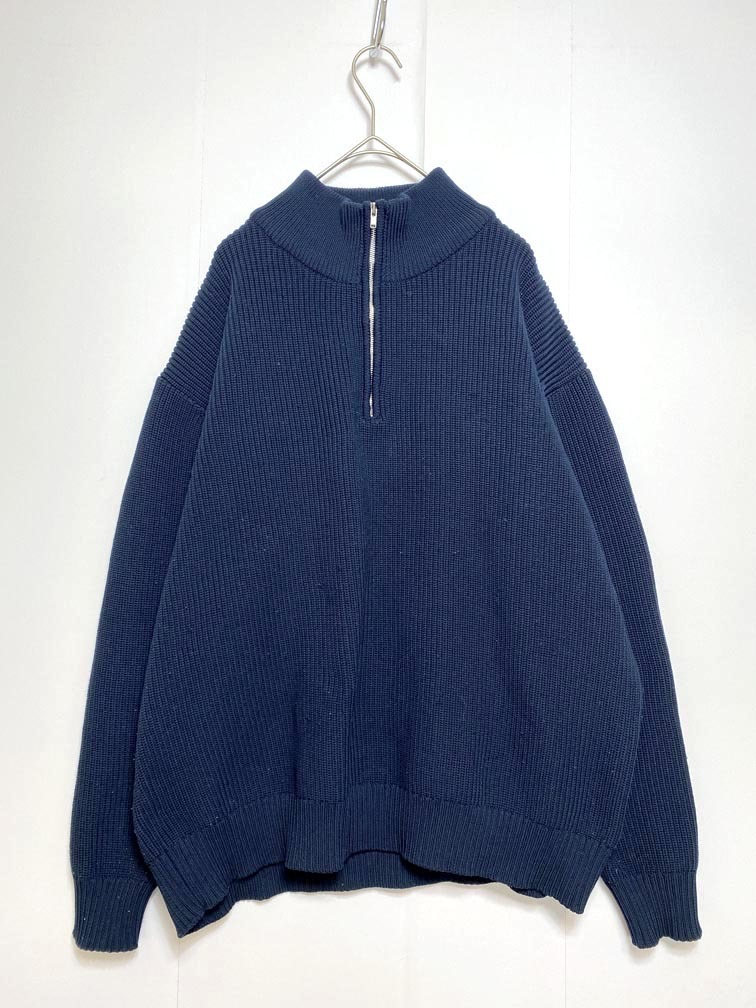 - SHIPS シップス 116-34-0043 定価8910円 7ゲージ リラックスフィット 度詰め 畔編み ハーフジップ ニット セーター sizeM/紺 ◆■