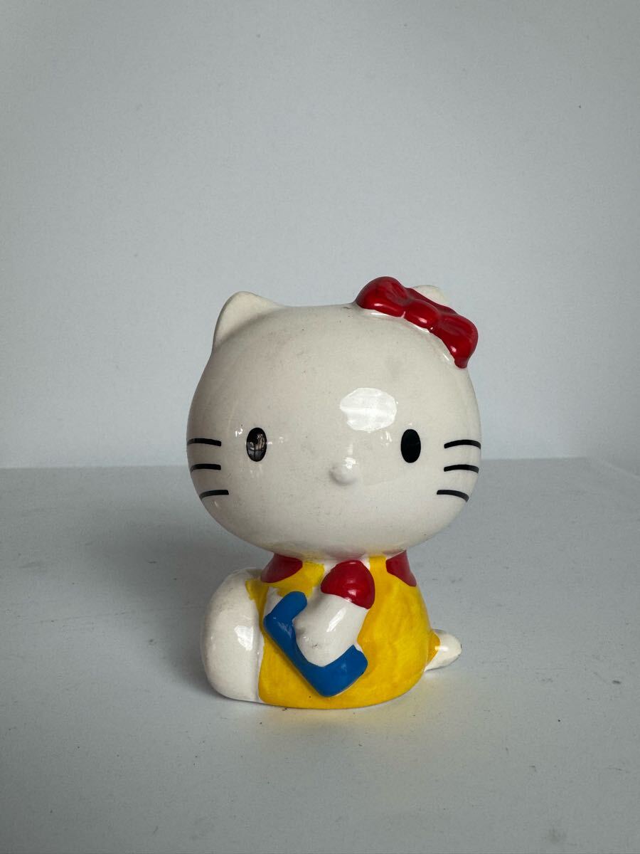 - サンリオ ハローキティ 貯金箱 旧ロゴ 昭和レトロ キティちゃん SANRIO レトロ 置物 手彩色 Hellokitty 陶器 ビンテージ