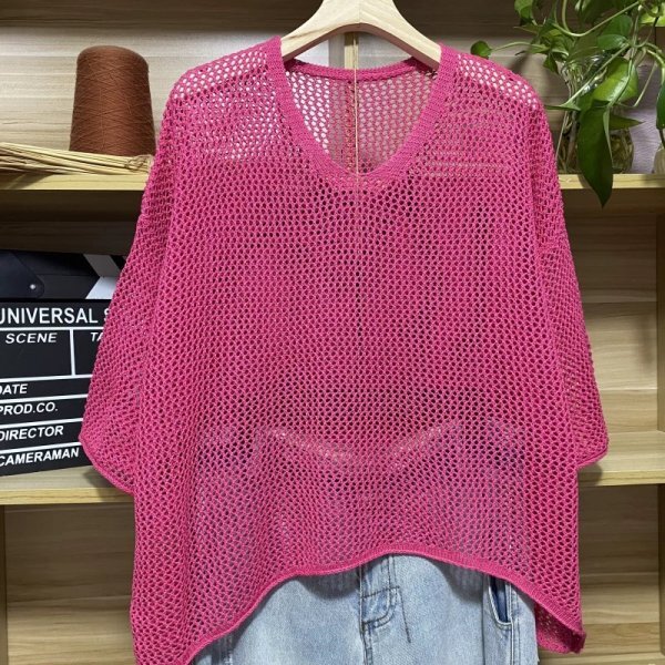 - 25zy サマーニット レディース トップス 高質 ラフ 麻タッチニット チュニック ナチュラル 麻混 サラサラ 涼感 Tシャツ 網状3