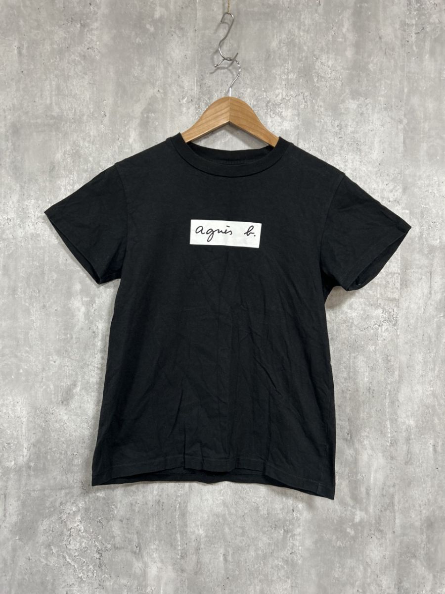 - ネコポスOK agnes b アニエスベー 半袖 プリント ハコロゴ Tシャツ sizeM/黒 ■◆ レディース