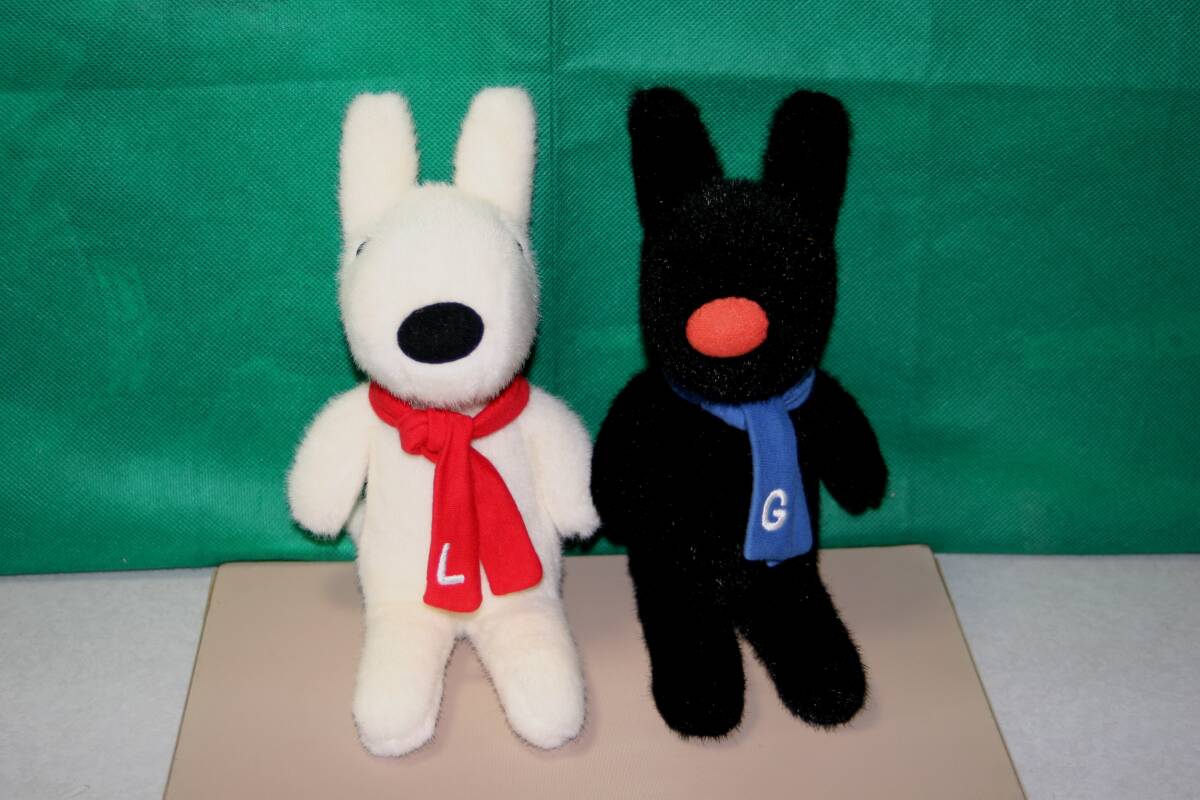 > リサとガスパール ぬいぐるみ (Sサイズ) 2体セット サンアロー 2004年 約20cm 白犬 黒犬 Gaspard et Lisa