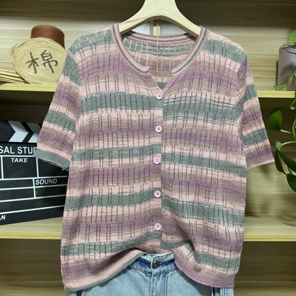 - 25zy サマーニット シンプル トップス 高質 ラフ タッチニット チュニック ナチュラル 綿混 サラサラ 涼感 Vネックキレイな色合い5