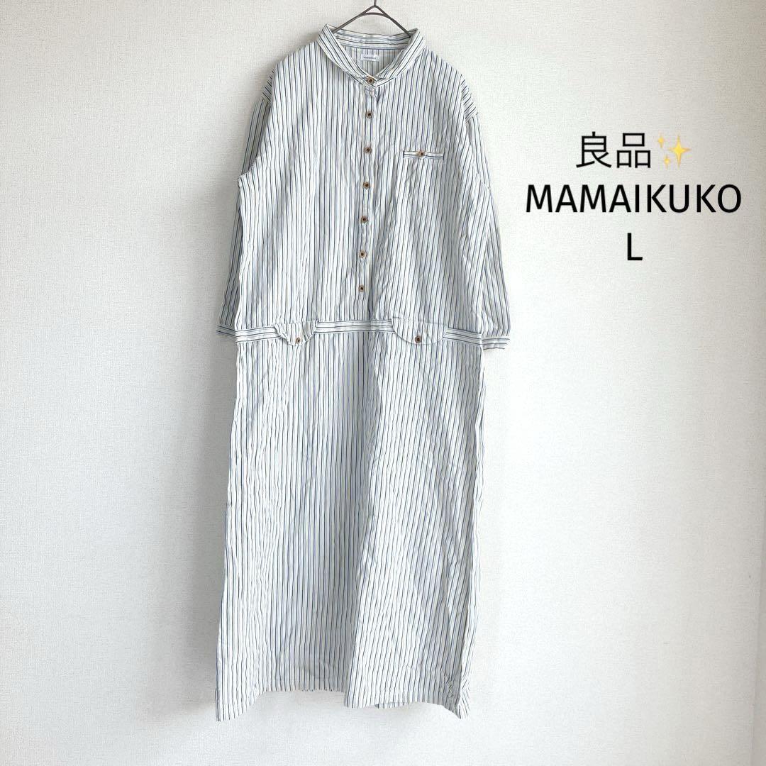 - ママイクコ MAMAIKUKO シャツワンピース ストライプ 七分袖 良品