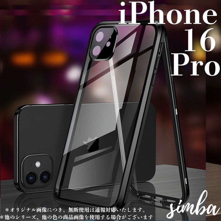 - iPhone 16 Pro ケース 両面強化ガラス クリアカバー マグネット式 フルカバー 360度保護 シンプル 高耐久 カメラ保護 ブラック 韓国風