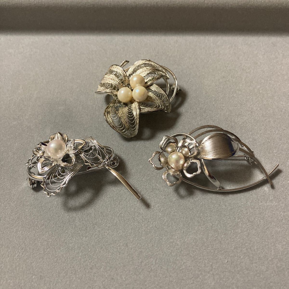 - アコヤ真珠 本真珠ブローチ パールブローチ 3点 総重量25g