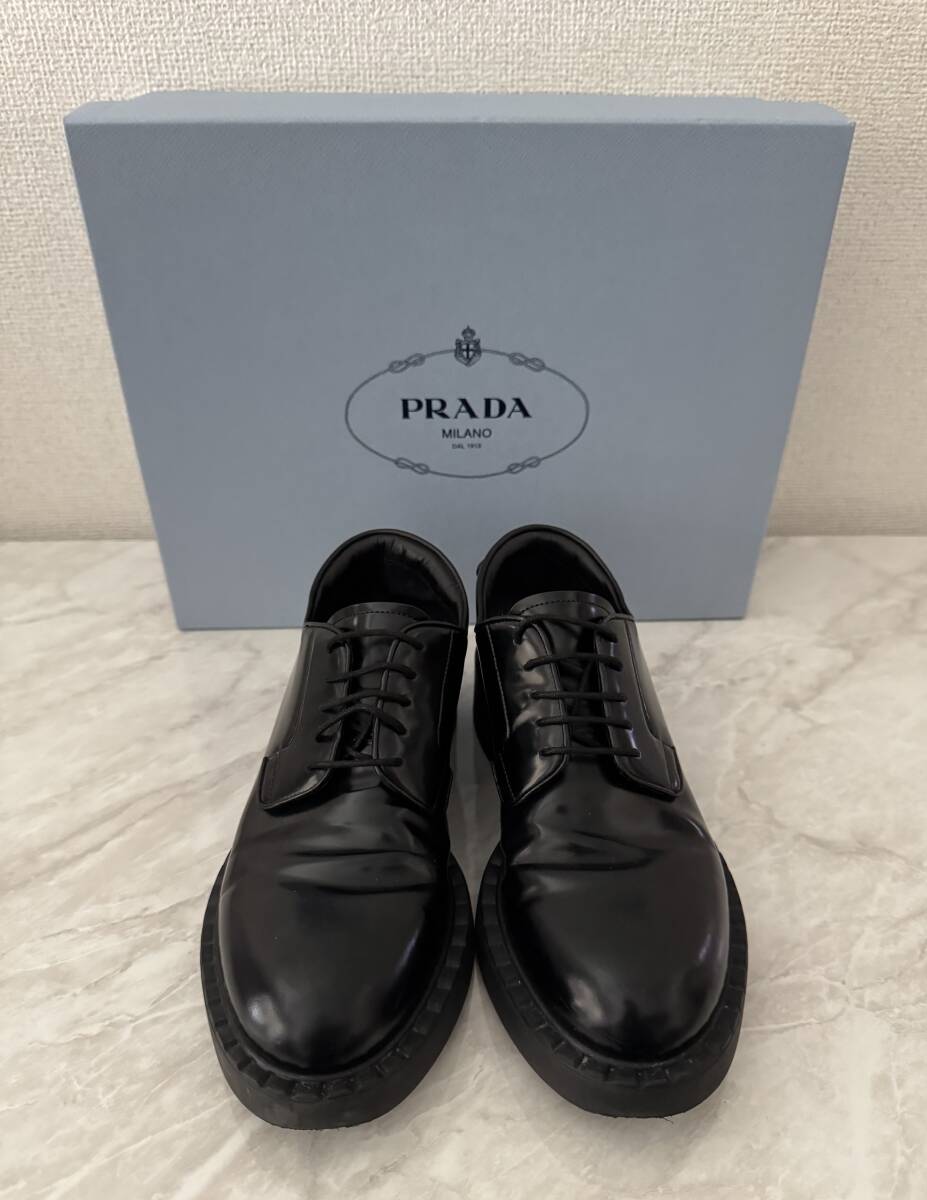 > 匿名配送 送料込 プラダ PRADA レディース シューズ 靴 黒 ブラック 341/2 34ハーフ 紐靴 女性 ローファー USED