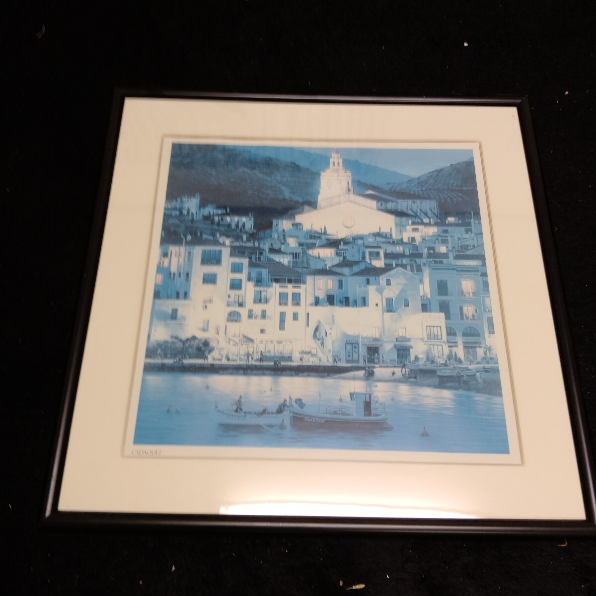 - 笹倉鉄平の複製画「カダケス」 スペインのカダケスという美しい港町を描いた作品 額縁付飾