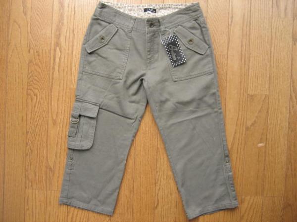 - 即決新品 コットン サブリナパンツ カーキ系 L 裾ロールアップ / ハーフパンツ? /