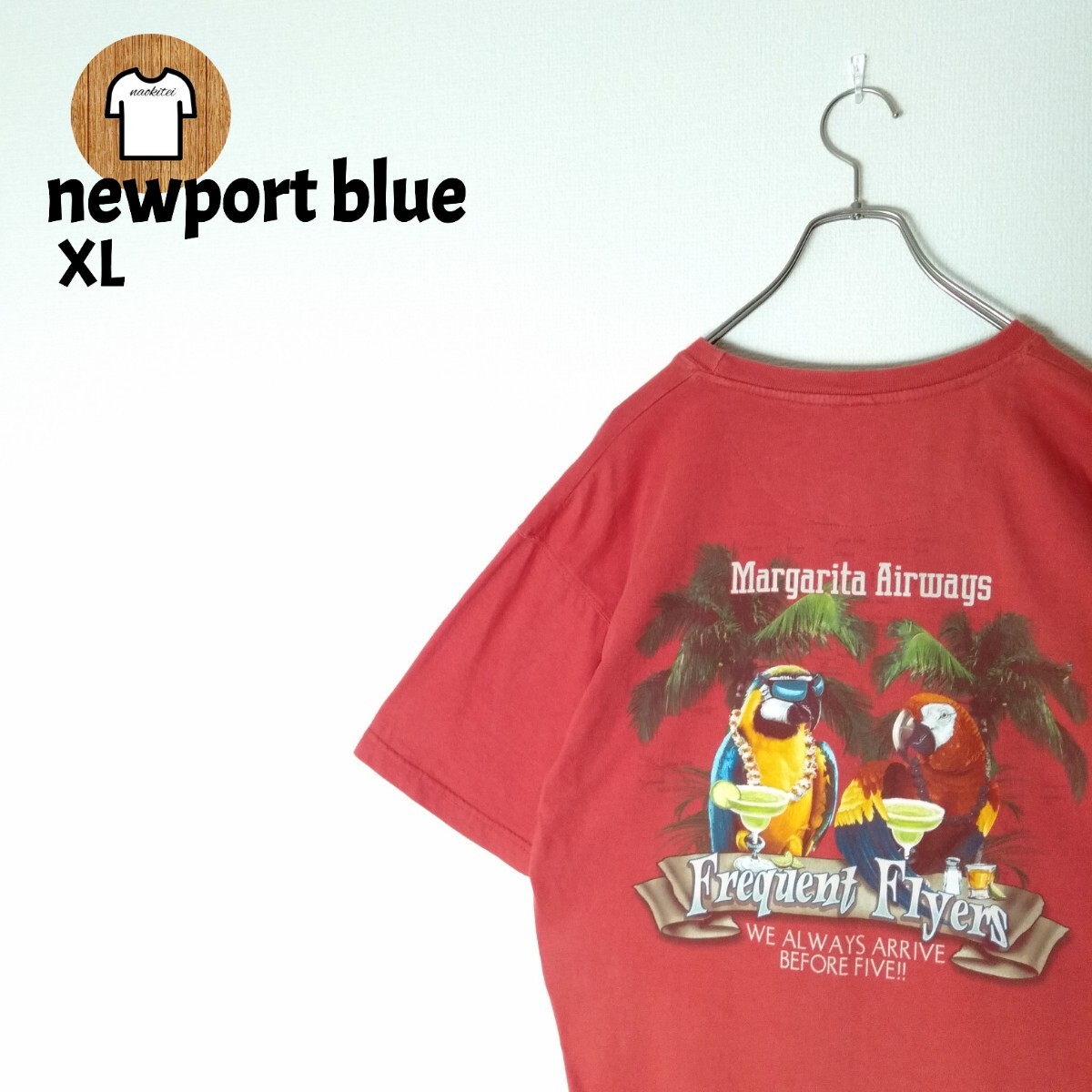 > newport blue 半袖 バックプリント Tシャツ tシャツ XL LL 赤 レッド B95 ビッグサイズ 大きめ 大きい ボックスシルエット コットン 綿