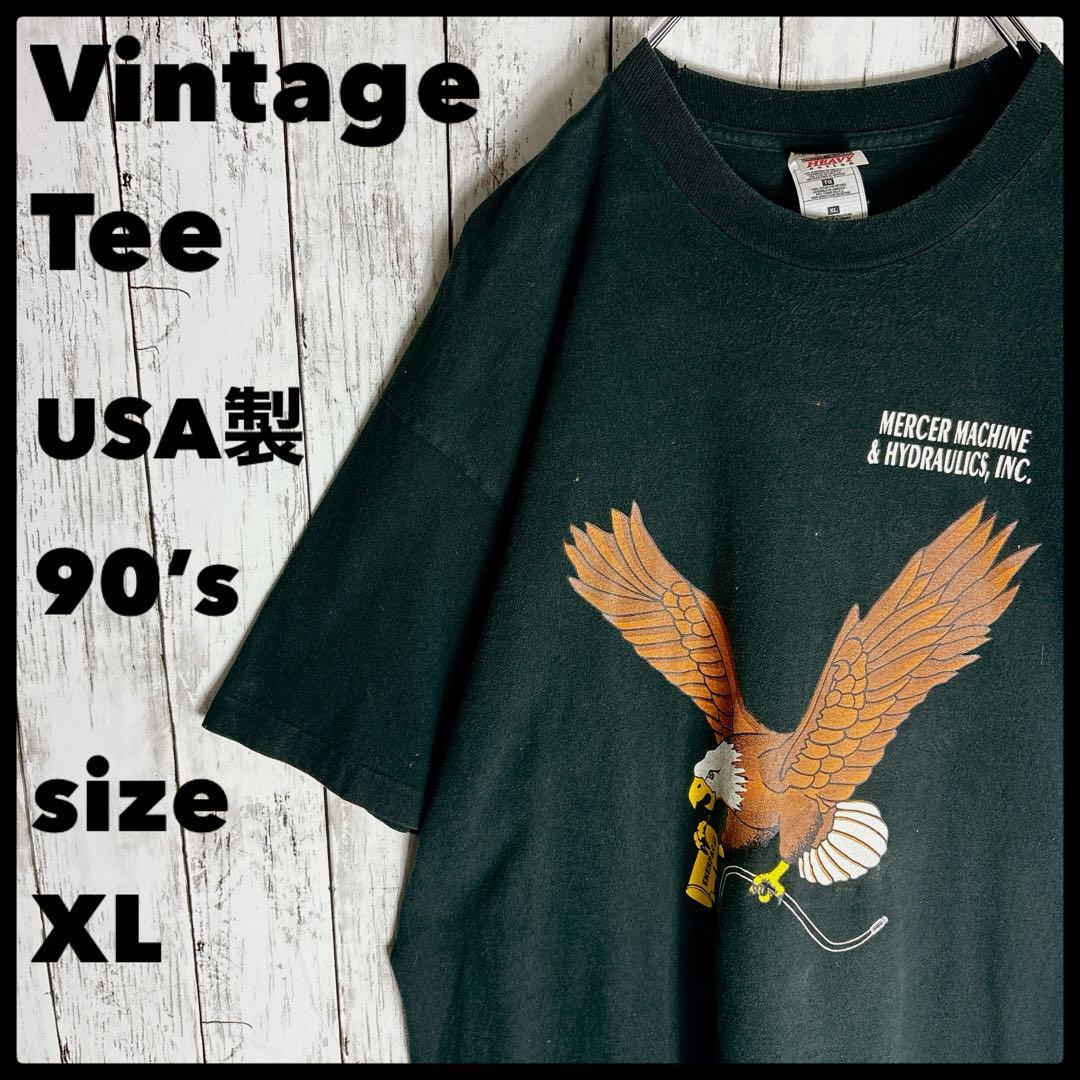 - ヴィンテージtシャツ 90s USA製 XL タカ 鷹 両面プリント シングル