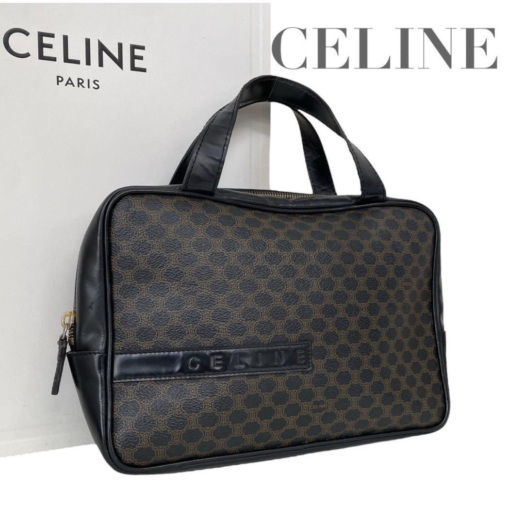 - 希少 セリーヌ 黒マカダム ハンドバッグ ロゴ エナメル PVC 4801