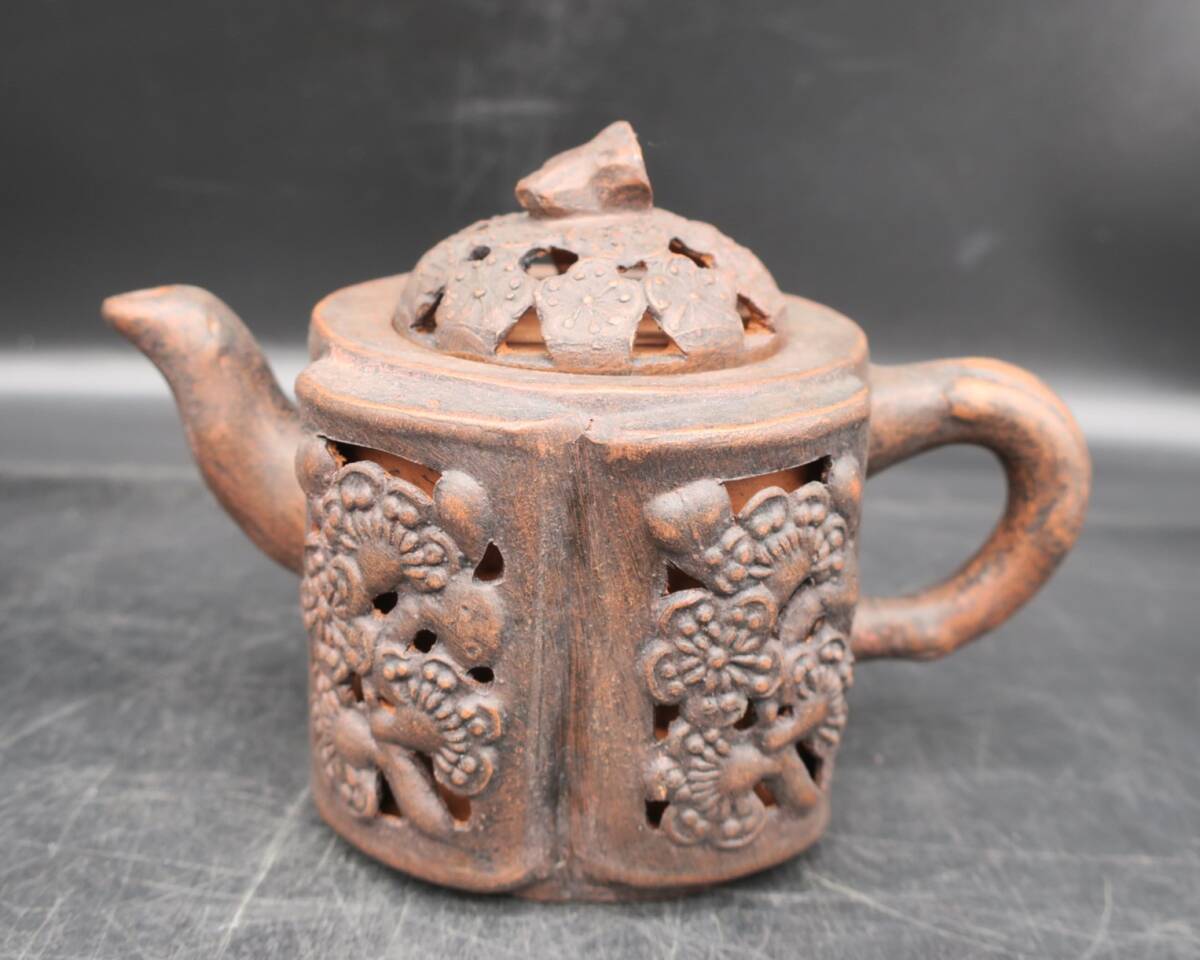 - 【中国茶器 急須/梅花刻文/点茶器】