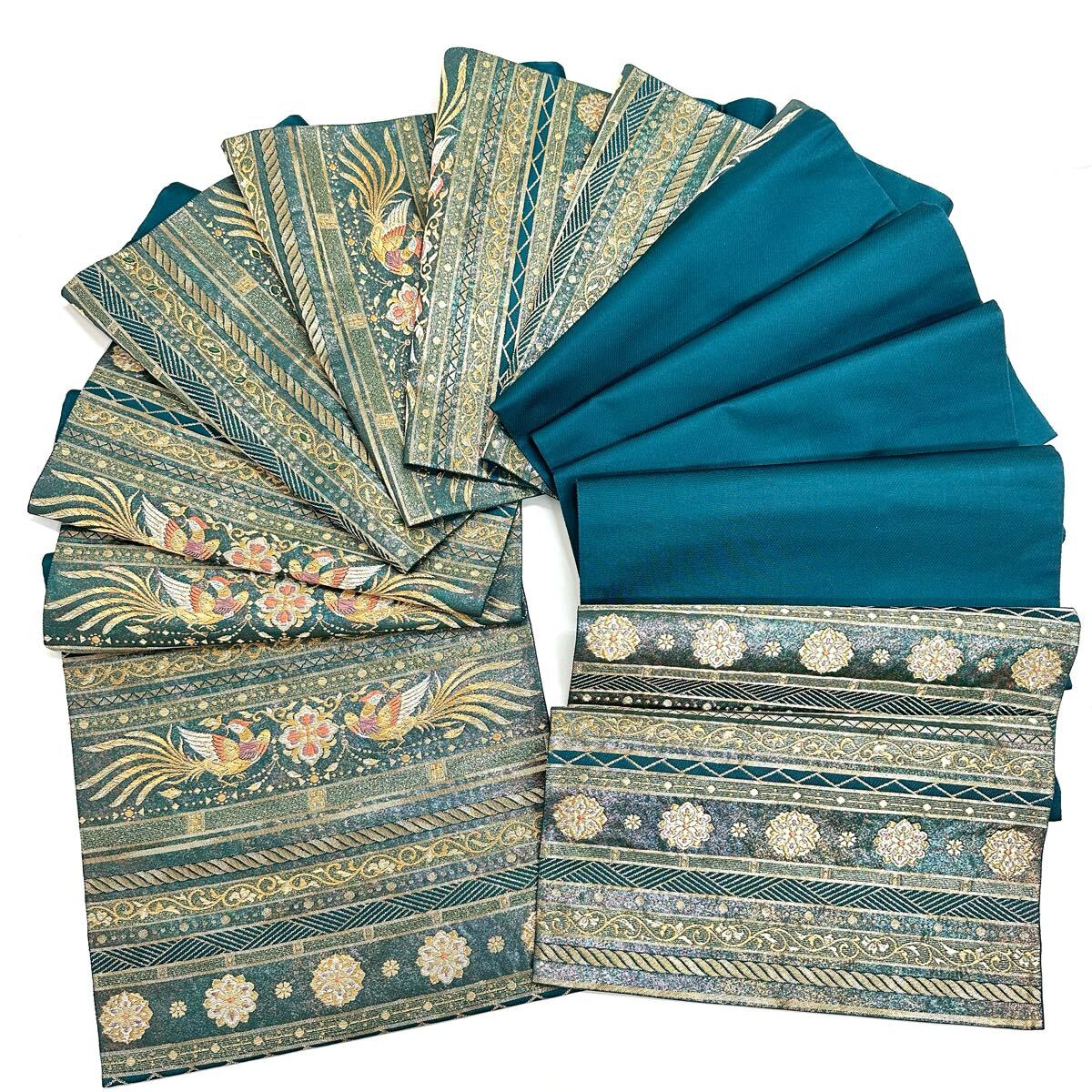 - 【七福】c638 逸品 高級品 正絹 袋帯 六通 色石 向かい鳥 鳳凰 華文 縞 金糸 銀糸 刺繍 豪華