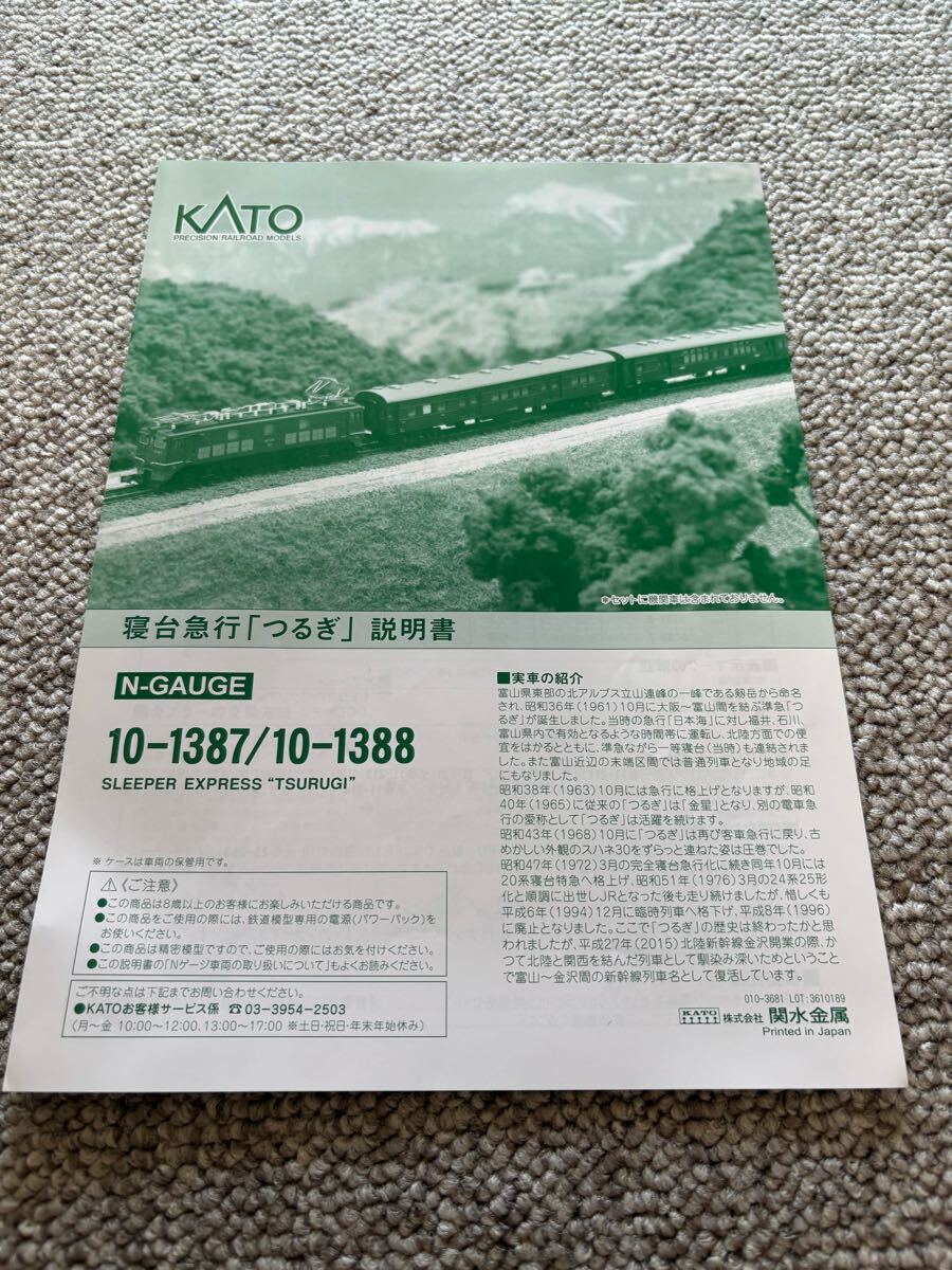 - ◆◇KATO カトー 10-1387・1388 寝台急行「つるぎ」 冊子のみ 平日クリックポスト230円発送◇◆