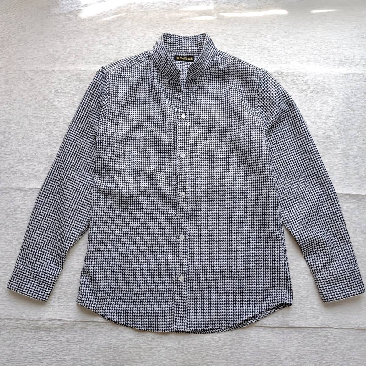 - 哀川翔着用 GARNIER ガルニエ 千鳥格子 スタンドカラーシャツ 長袖 メンズL プリペラ素材 250702-08