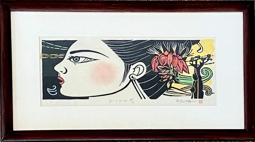 - 【真作保証】儀間比呂志 『デイゴの花』版画 沖縄県出身 絵本作家 琉球風土 直筆サイン R7-0117
