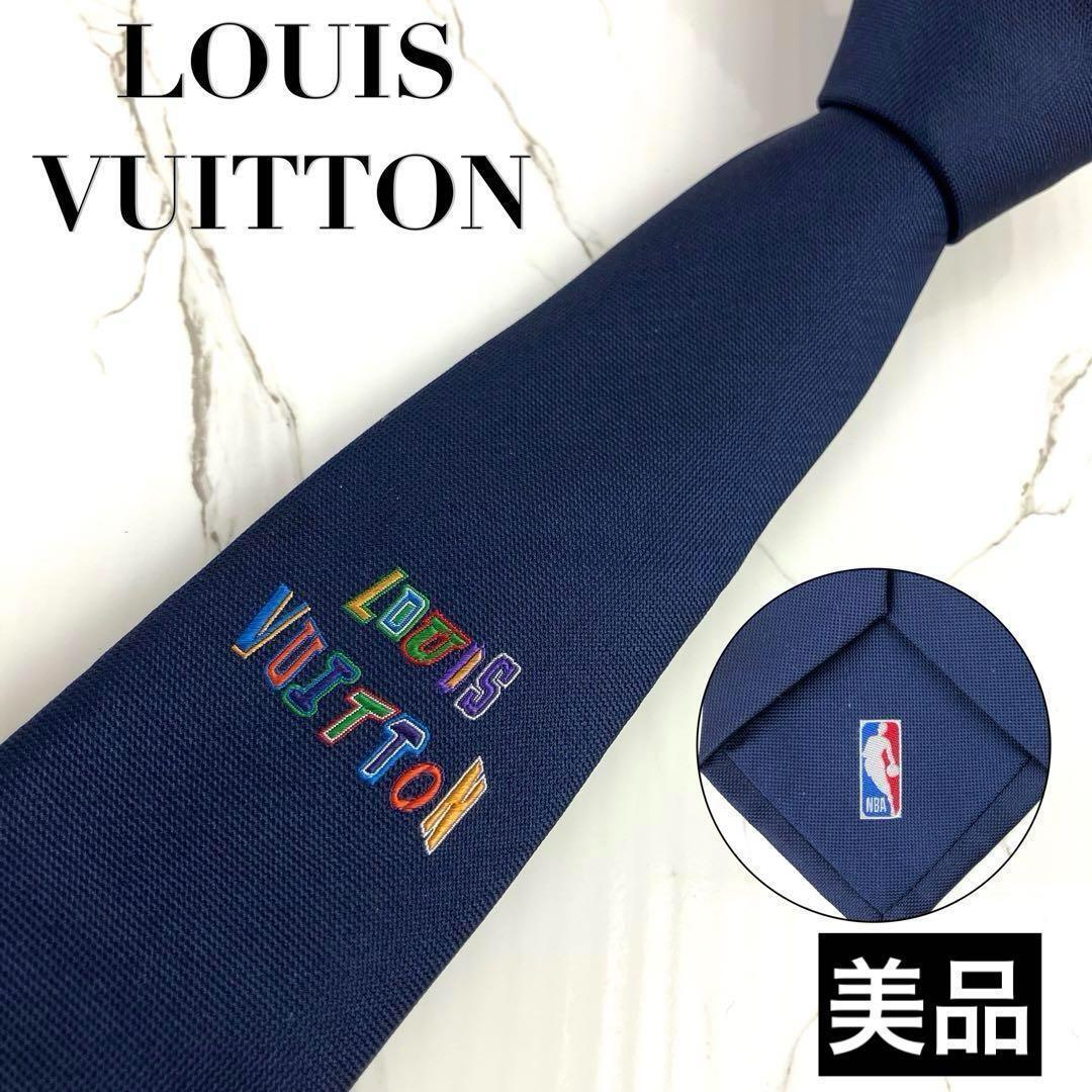 - 美品 Louis Vuitton ルイヴィトン ネクタイ NBAコラボ ワンポイント ソリッド ネイビー